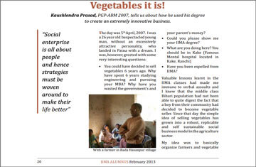 Kaushlendra, the 2007 batch topper of the IIM, Ahmedabad, became a vegetable vendor “to earn money and ensure quality prices to farmers and quality product to citizens”.